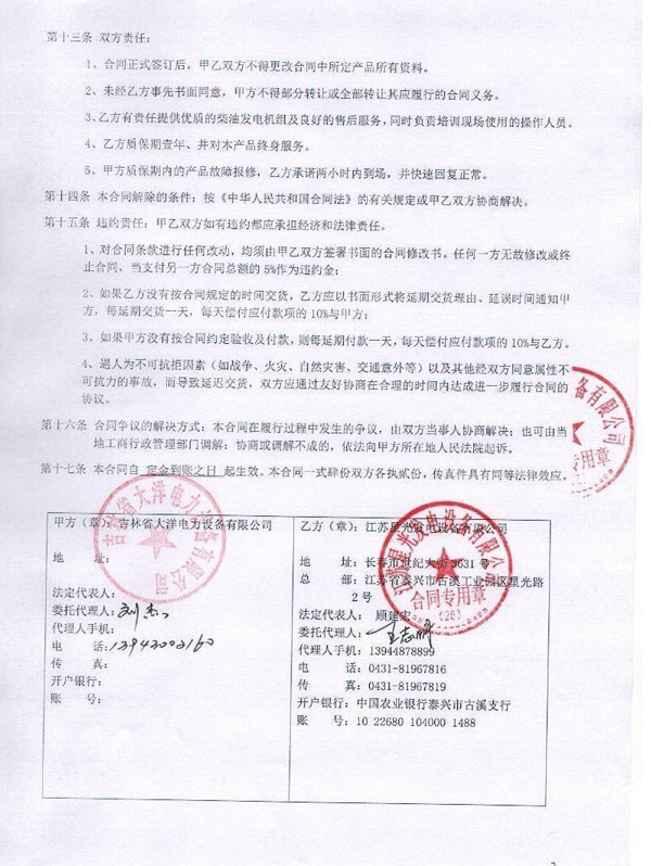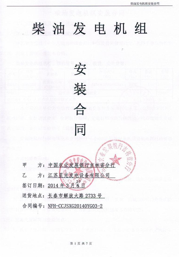 中國農業(yè)發(fā)展銀行吉林省分行柴油發(fā)電機組安裝合同
