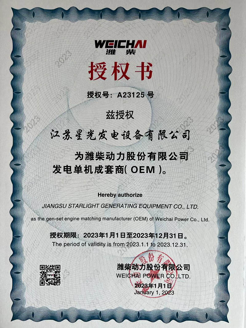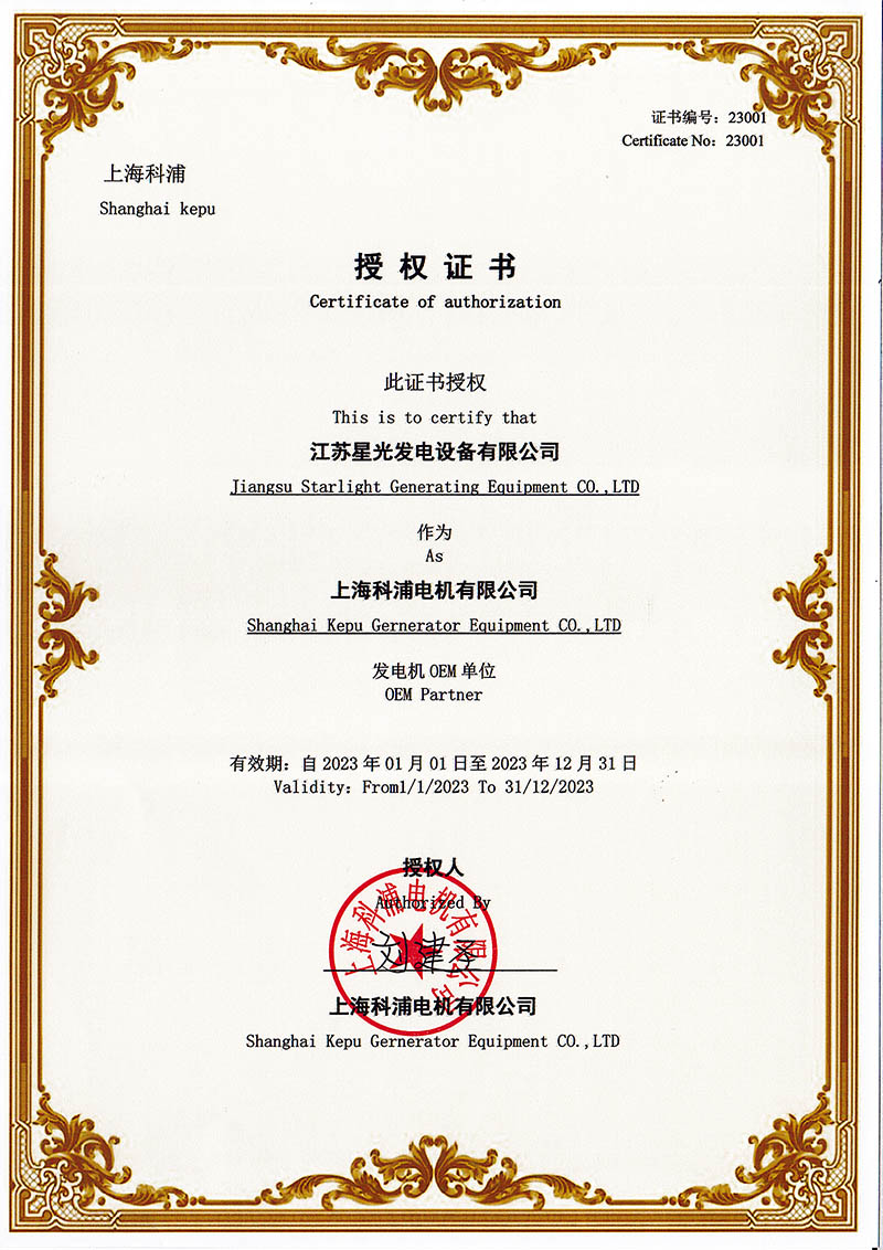 上海孚創(chuàng)動力電氣有限公司OEM授權(quán)證書