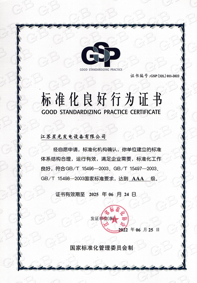 2022年AAA級(jí)標(biāo)準(zhǔn)化良好行為企業(yè)證書(shū)
