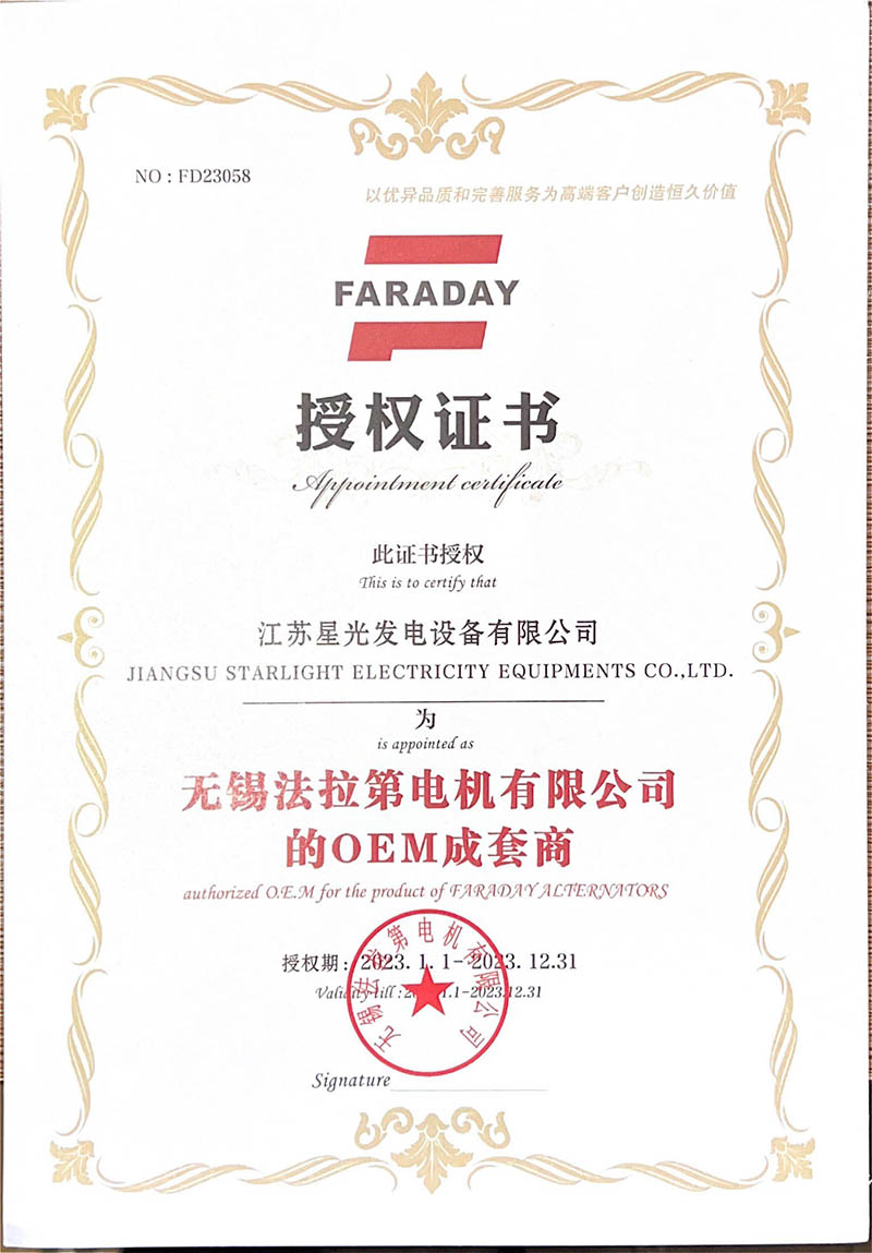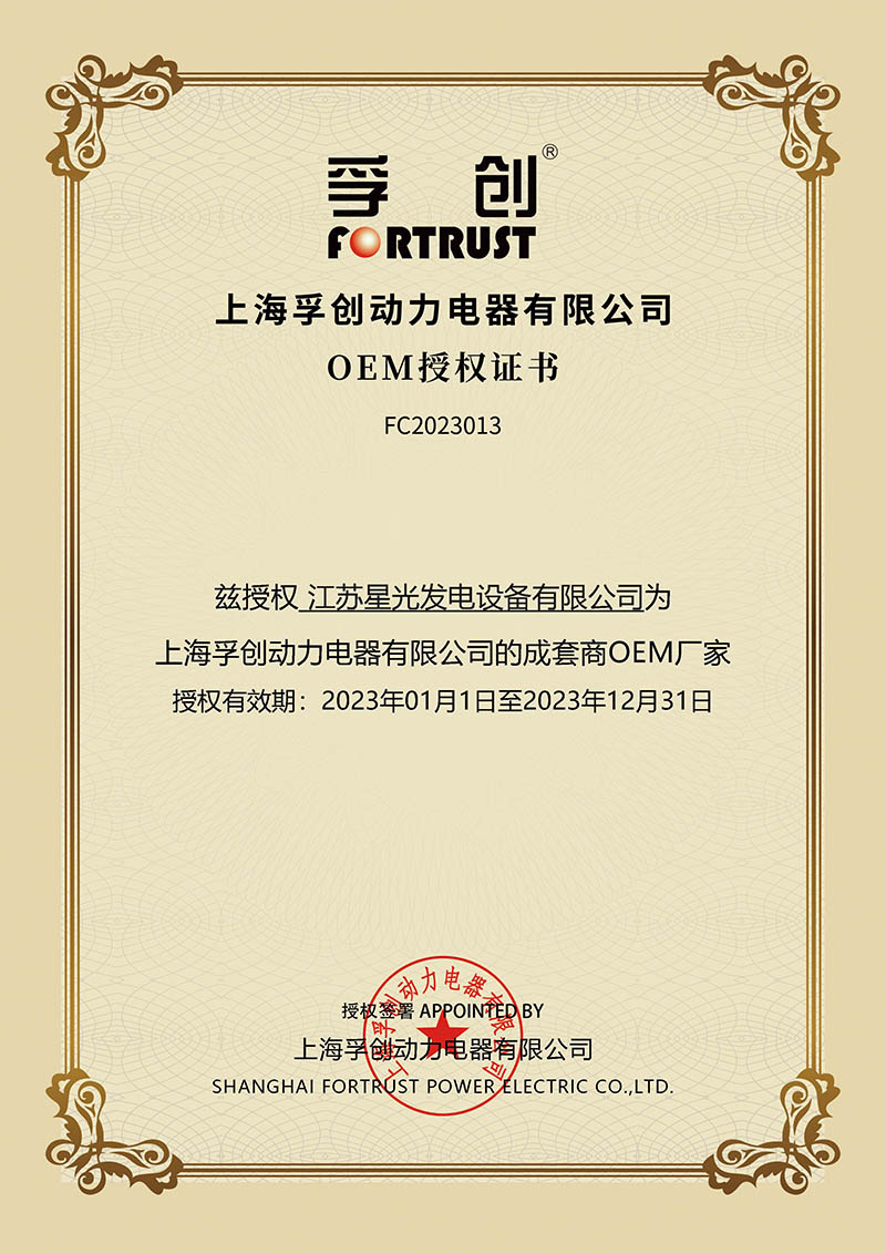 上海孚創(chuàng)動(dòng)力電氣有限公司OEM授權(quán)證書(shū)