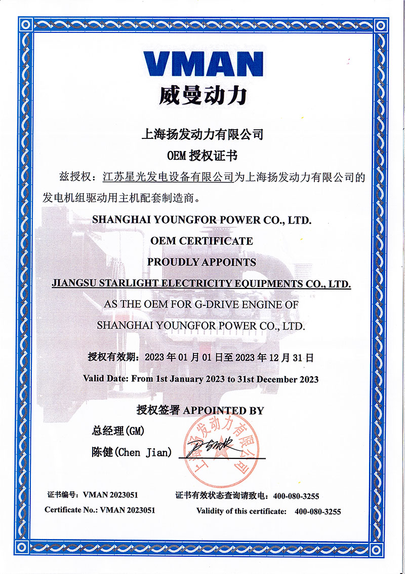 2023年威曼動(dòng)力OEM授權(quán)書(shū)
