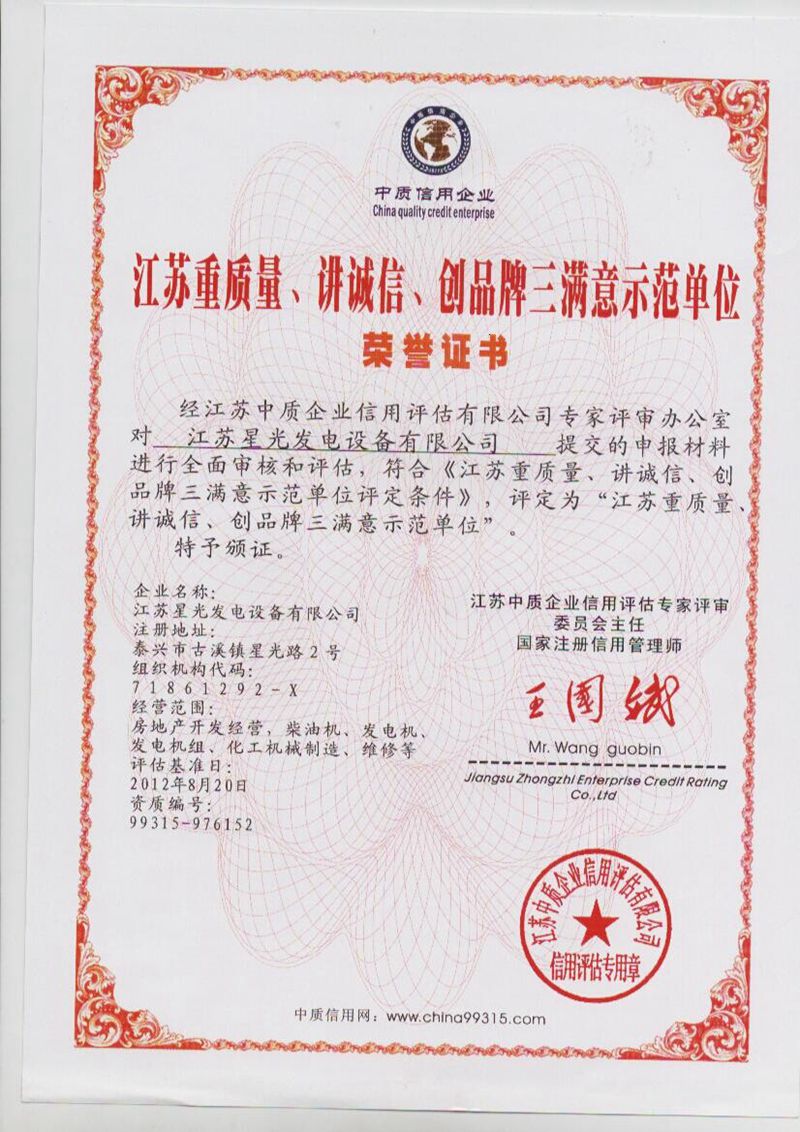 江蘇重質(zhì)量、講誠信、創(chuàng)品牌三滿意示范單位榮譽(yù)