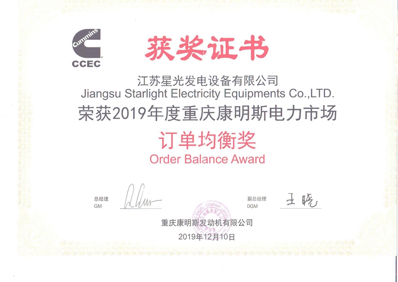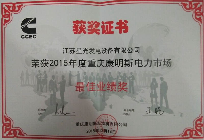 康明斯電力市場最佳業(yè)績獎(jiǎng)