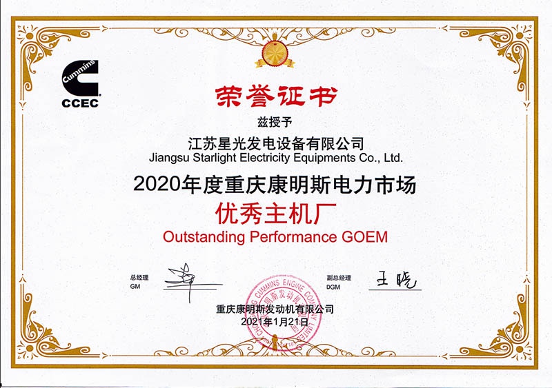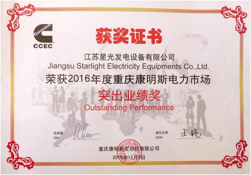 康明斯電力市場突出業(yè)績獎(jiǎng)