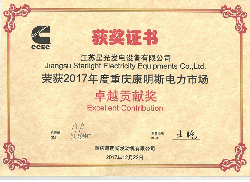康明斯電力市場卓越貢獻(xiàn)獎(jiǎng)