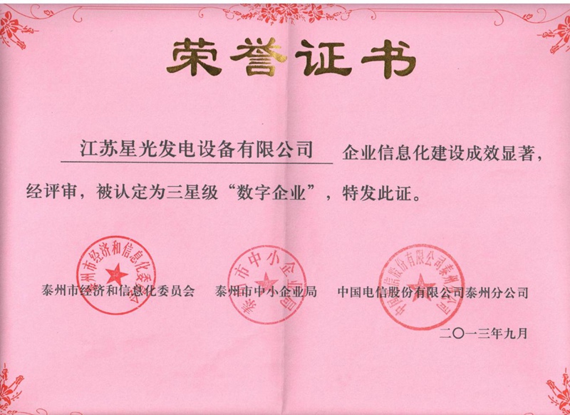 三星級“數(shù)字企業(yè)”榮譽(yù)證書、泰州市誠信單位榮