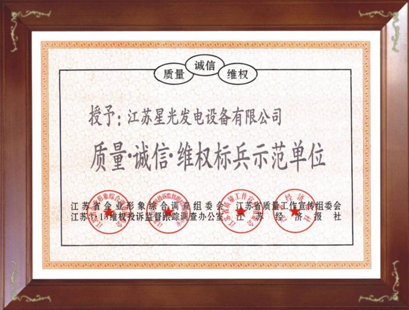 質(zhì)量?誠信?維權(quán)標(biāo)兵示范單位證書